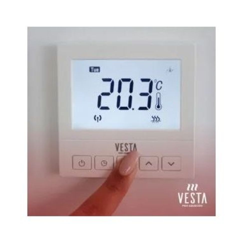 Uma vez instalado, você pode controlar a temperatura de cada ambiente da casa de forma individual, por meio de um pequeno termostato que é instalado na parede.
