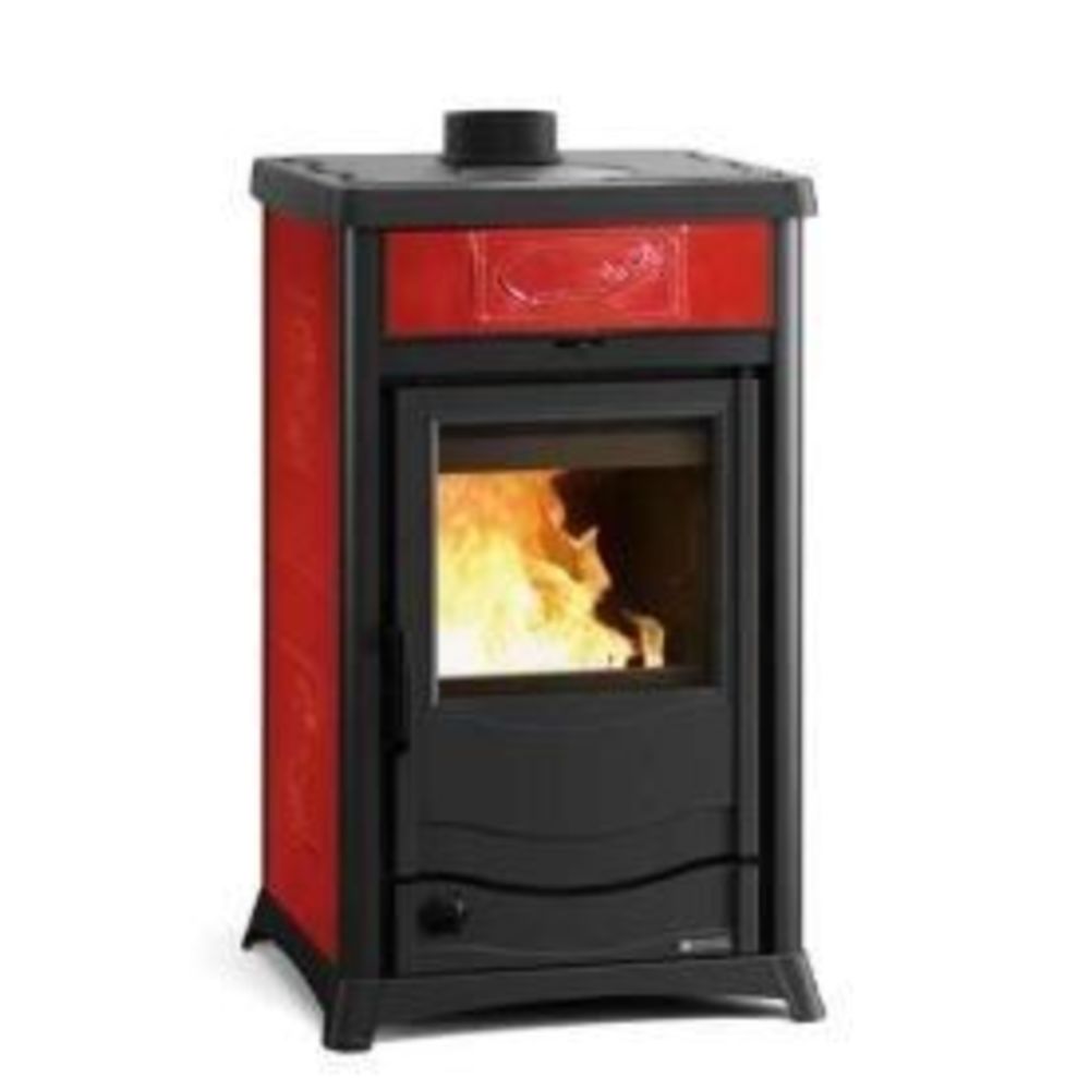 Salamandra de aquecimento central, a lenha, para ÁGUA, da marca LA NORDICA. Porta em vitroceramico com ampla visão de fogo.